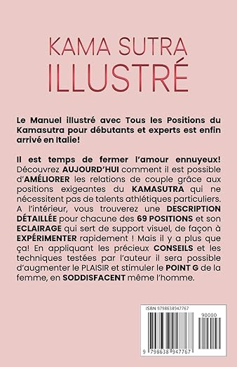 Ce livre est une adaptation moderne et illustrée du célèbre traité de l'amour indien, le Kama Sutra. Julie Laurent y présente de manière détaillée et explicite les différentes positions et techniques sexuelles décrites dans le texte original, illustrées par de magnifiques dessins érotiques. Un guide complet et ludique pour explorer et enrichir sa vie sexuelle, tout en découvrant l'art de l'amour tel qu'il était pratiqué dans l'Inde ancienne. Un ouvrage à la fois instructif et sensuel, destiné à tous ceux qui souhaitent découvrir de nouvelles façons de donner et de recevoir du plaisir.